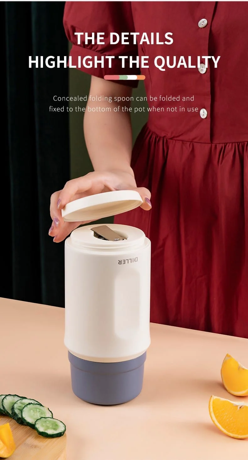 تحتوي وعاء الطعام هذا على ملعقة قابلة للطي، وهي مريحة ولا تشغل مساحة.