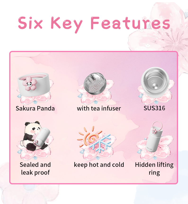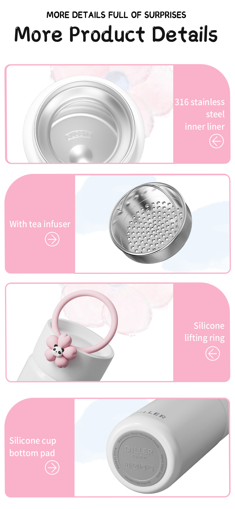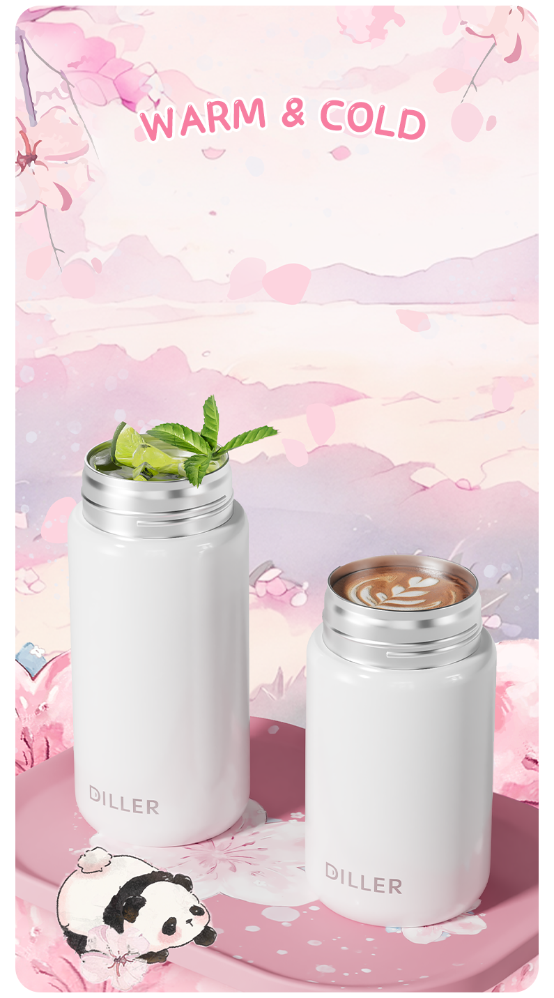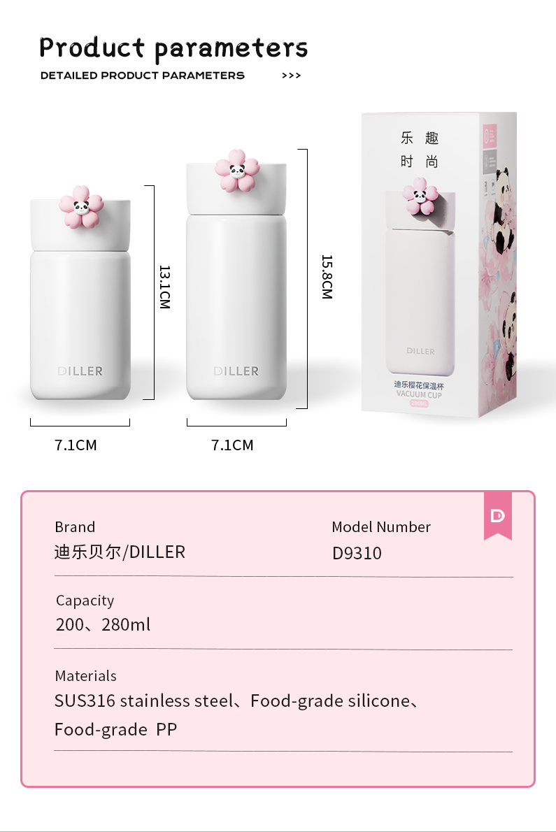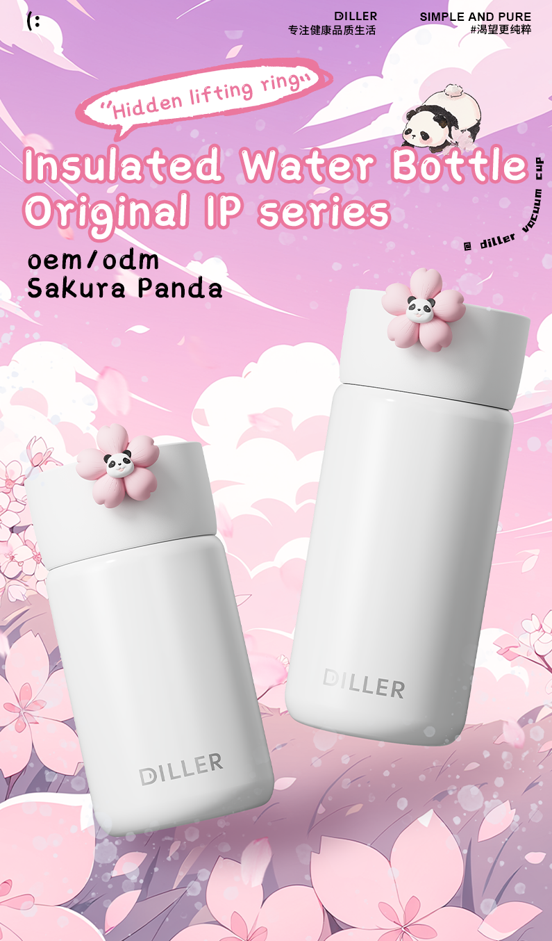 The DILLER D9310 Sakura Panda insulated bottle is designed for brands, distributors, and importers seeking high-quality stainless steel drinkware with OEM customization capability.