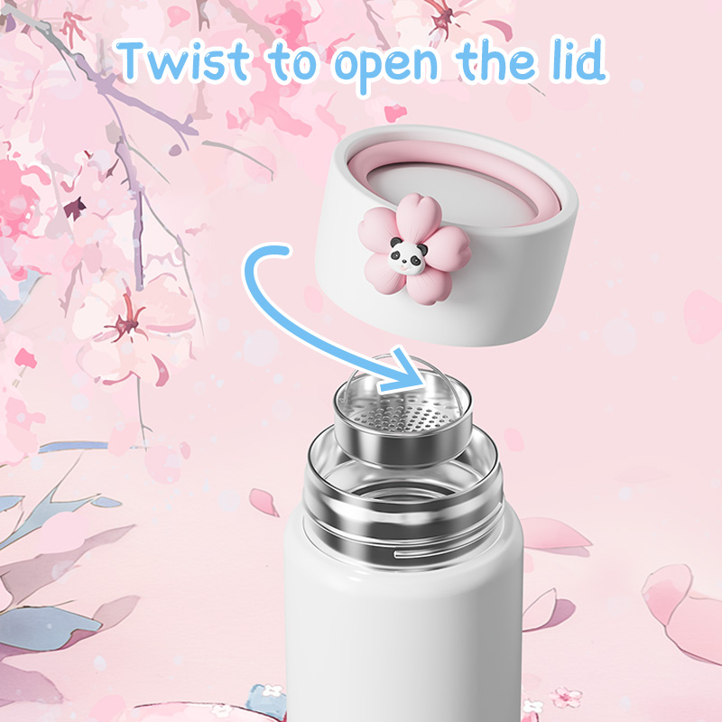 Equipped with a removable tea infuser, the bottle is suitable for loose leaf tea, herbal blends, and infused beverages. The sealed and leak-proof lid structure provides secure portability, while the hidden lifting ring enhances convenience without affecting the overall appearance.