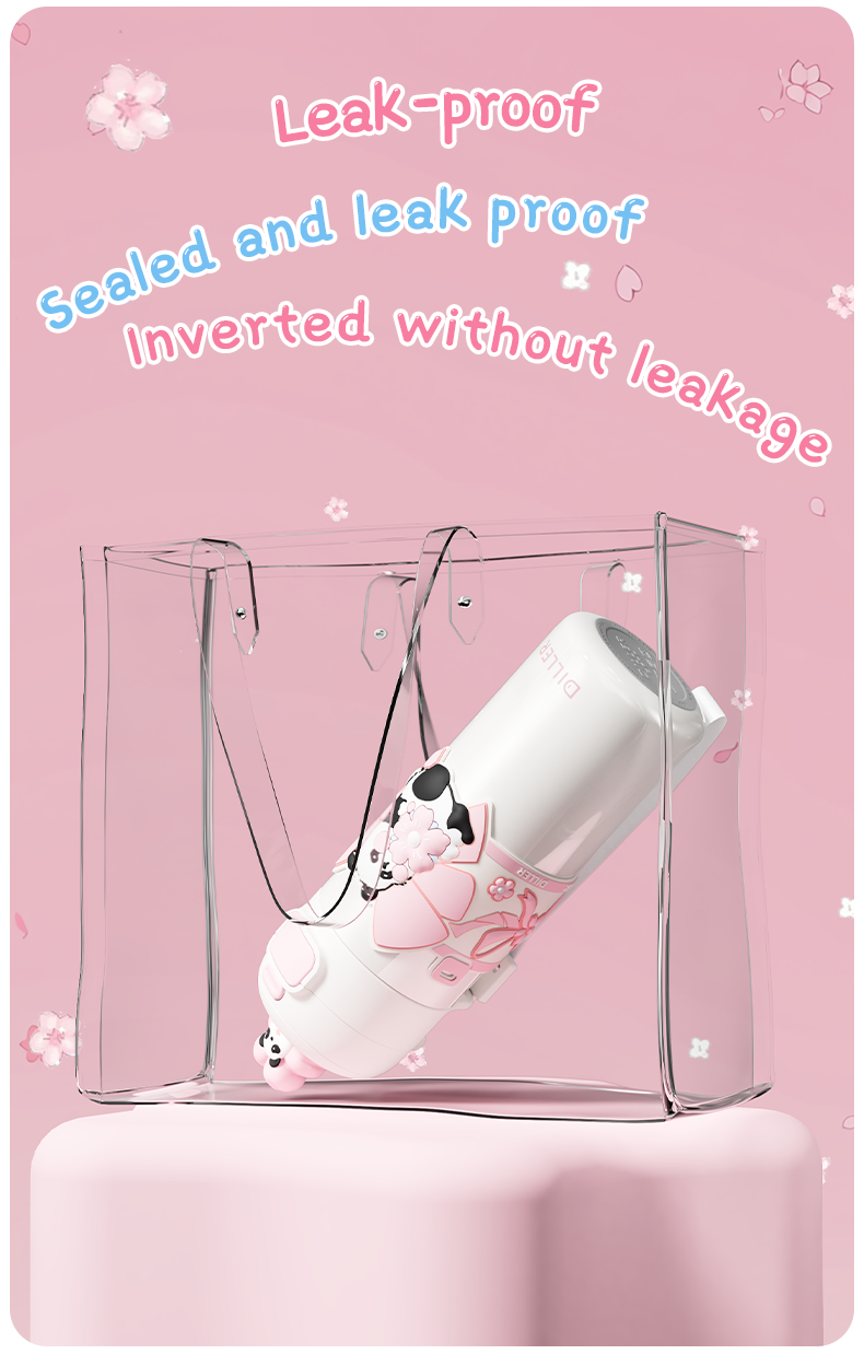 The sealed structure ensures inverted use without leakage, making it reliable for commuting, travel, school, and outdoor applications. Additional functional details include a portable rope for easy carrying, an anti-slip cup sleeve for better grip, and a silicone bottom pad for surface protection and stability.