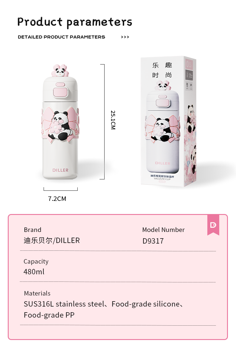 The DILLER D9317 insulated bottle is a 480ml premium stainless steel thermo cup developed for brands and distributors seeking high-quality OEM drinkware solutions.