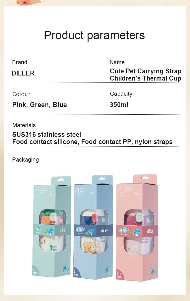このかわいい子供用断熱ウォーターボトルは、高品質の 316 ステンレス鋼と食品グレードの素材で作られています。