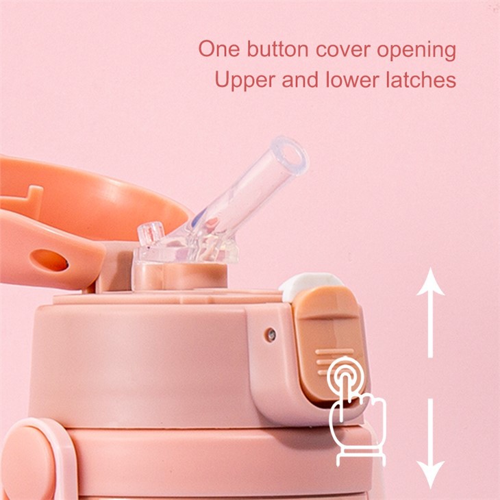 この子供用ウォーターボトルは軽量でコンパクトで、プッシュボタン式の蓋が付いているので持ち運びや開け閉めが簡単です。