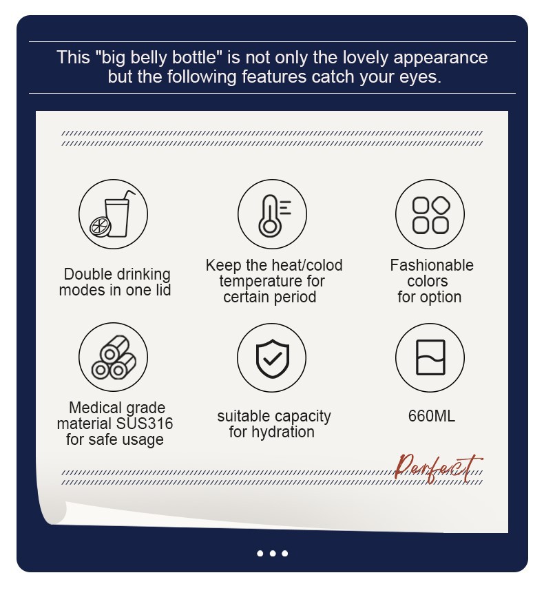 1. 이 이중벽 진공 단열 스테인리스 스틸 병은 외부 온도가 내부 음료 온도에 영향을 미치지 않도록 하여 음료가 하루 종일 원하는 대로 유지됩니다.