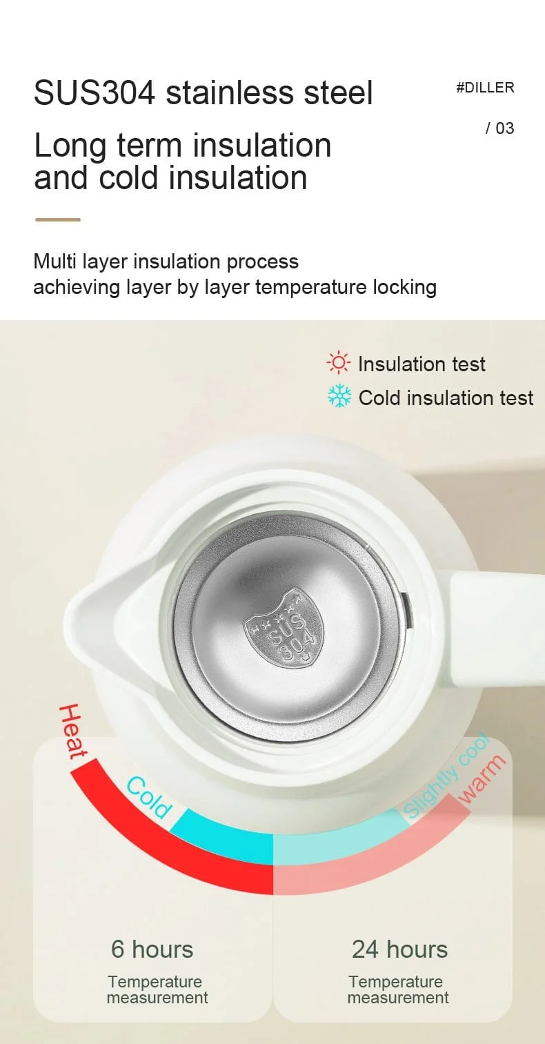 이 휴대용 가정용 보온병은 304 스테인리스 스틸과 식품 등급 소재로 만들어졌습니다.