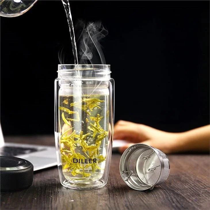 1. Dubbelwandige glazen mok is functioneel en goed ontworpen! Lichtgewicht en stevig, en moeiteloos schoon te maken. Dubbelwandig ontwerp zorgt ervoor dat terwijl uw thee warm blijft, de mok koel aanvoelt!