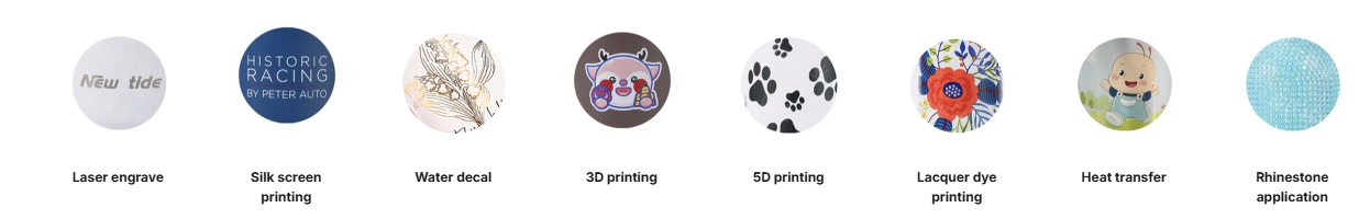 Если клиенту нужен простой логотип бренда или детально проработанная графика, мы предлагаем несколько способов печати: