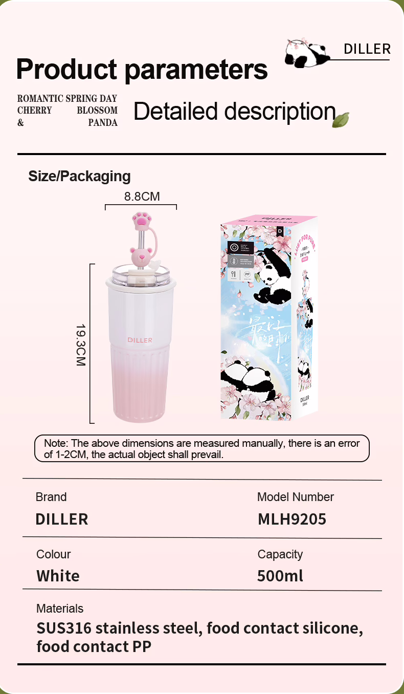 Кружка из нержавеющей стали поставляется с ударопрочной, кристально чистой крышкой. Милая силиконовая крышка-соломинка в виде панды, практичная и веселая.