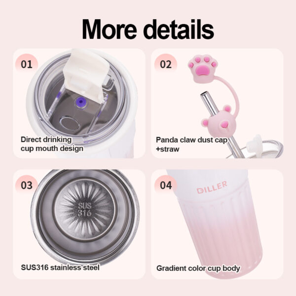 3. Кружка из нержавеющей стали поставляется с ударопрочной, кристально чистой крышкой. Милая панда силиконовая пылезащитная крышка-соломинка, практичная и веселая.